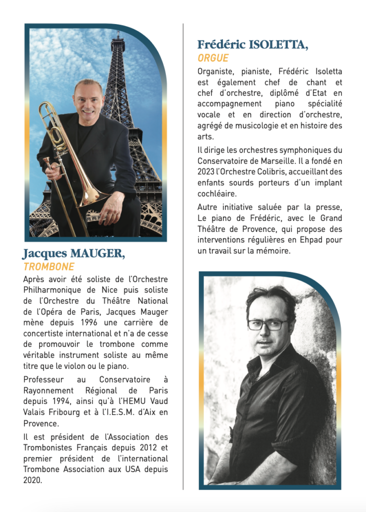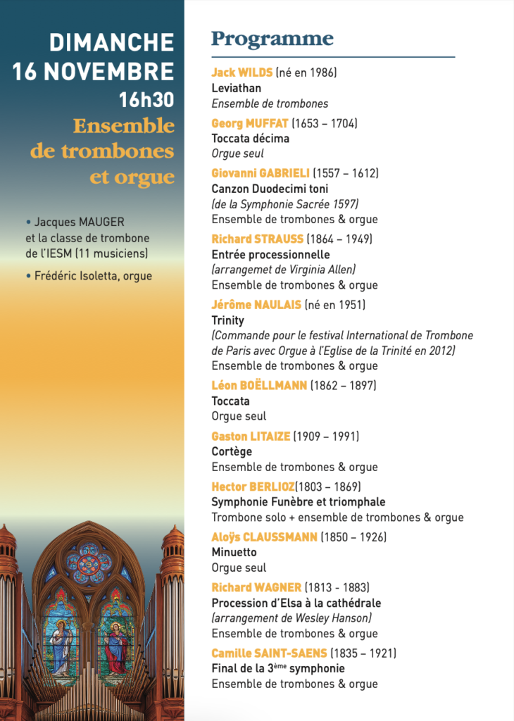 par Frédéric Isoletta (orgue), l’Ensemble de trombones de l’IESM et Jacques MAUGER (direction)